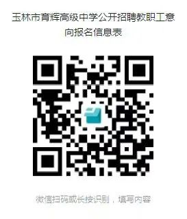 11月28日前,有意應(yīng)聘人員可先將電子版簡(jiǎn)歷、成績(jī)單等個(gè)人材料以“應(yīng)聘崗位+姓名+聯(lián)系電話”形式命名,發(fā)至育輝高級(jí)中學(xué)郵箱(yhgjzx2021@163.com),并填寫《玉林市育輝高級(jí)中學(xué)公開(kāi)招聘教師意向報(bào)名信息表》(掃附件3二維碼進(jìn)入填寫頁(yè)面),提交報(bào)名信息后掃描彈出的二維碼加入招聘QQ群,但最終以現(xiàn)場(chǎng)報(bào)名為準(zhǔn)。