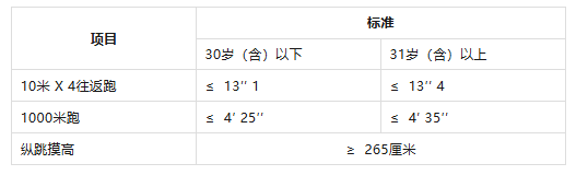 報(bào)考人員須參加全部三項(xiàng)體能測(cè)評(píng)。參加者凡有其中一項(xiàng)不達(dá)標(biāo)或放棄,視為體能測(cè)評(píng)不合格。體能測(cè)評(píng)合格,方可進(jìn)入下一環(huán)節(jié)。