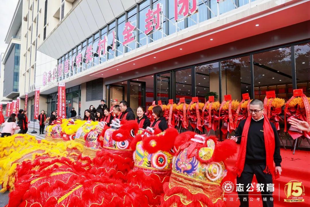 志公教育還專門請來了舞獅隊(duì),舞獅點(diǎn)睛是重頭戲,董事長李勇帶領(lǐng)著公司領(lǐng)導(dǎo)們手持毛筆蘸取朱砂,對獅頭天庭進(jìn)行點(diǎn)睛。