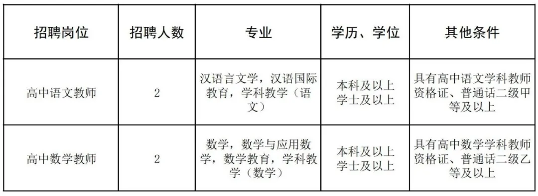 根據(jù)發(fā)展需要,學(xué)校擬招聘高中語文、高中數(shù)學(xué)頂崗教師共4人,具體招聘信息如下: