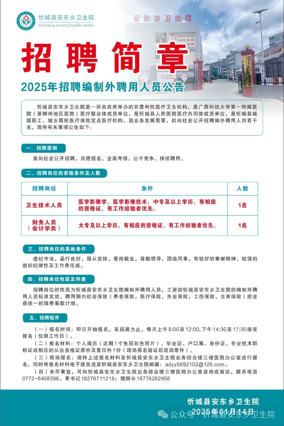 2025年來賓忻城縣安東鄉(xiāng)衛(wèi)生院招聘2人簡章