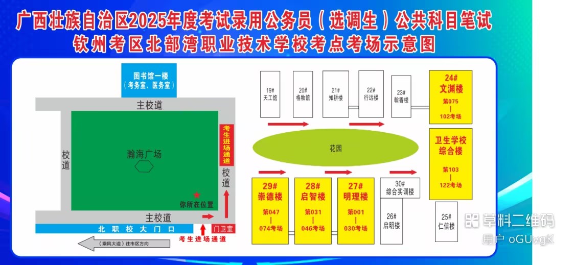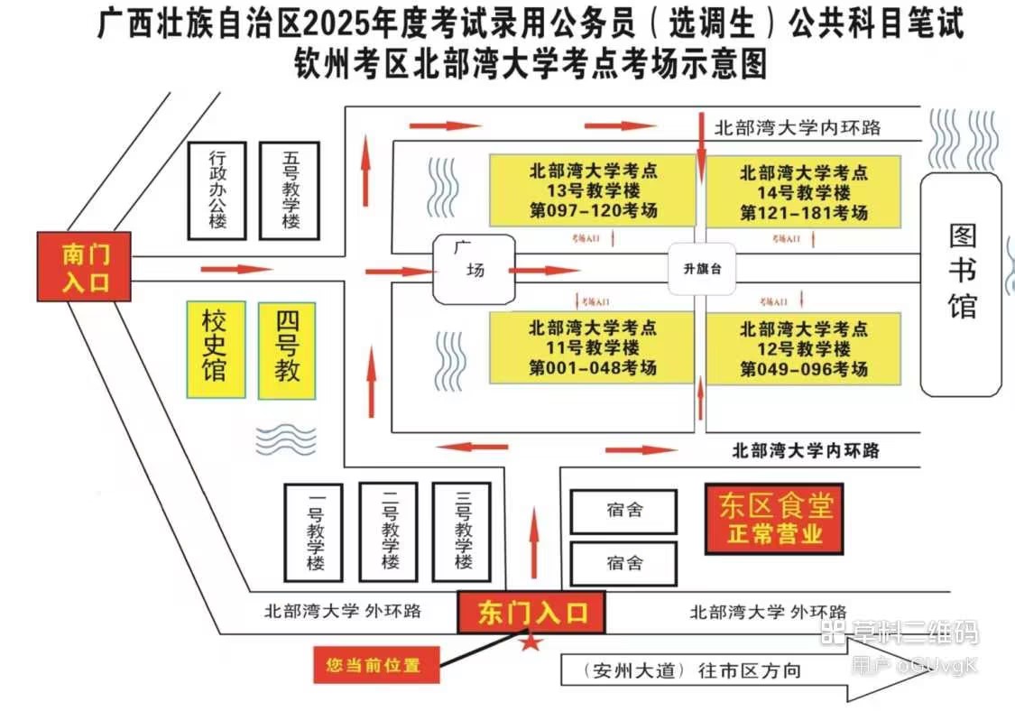 欽州考區(qū)共設(shè)兩個(gè)考點(diǎn),分別為北部灣大學(xué)考點(diǎn)、北部灣職業(yè)技術(shù)學(xué)??键c(diǎn)。(考點(diǎn)地址和具體考場安排請(qǐng)掃附后的二維碼查看)