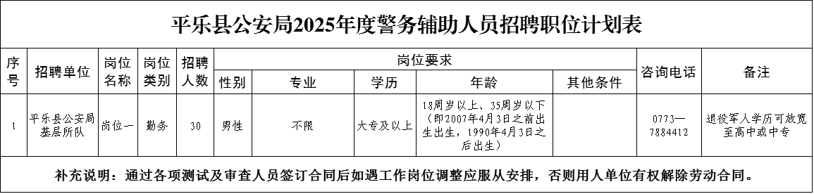 (四)本公告未盡事宜,由平樂縣公安局公開招聘工作領(lǐng)導小組辦公室負責解釋。