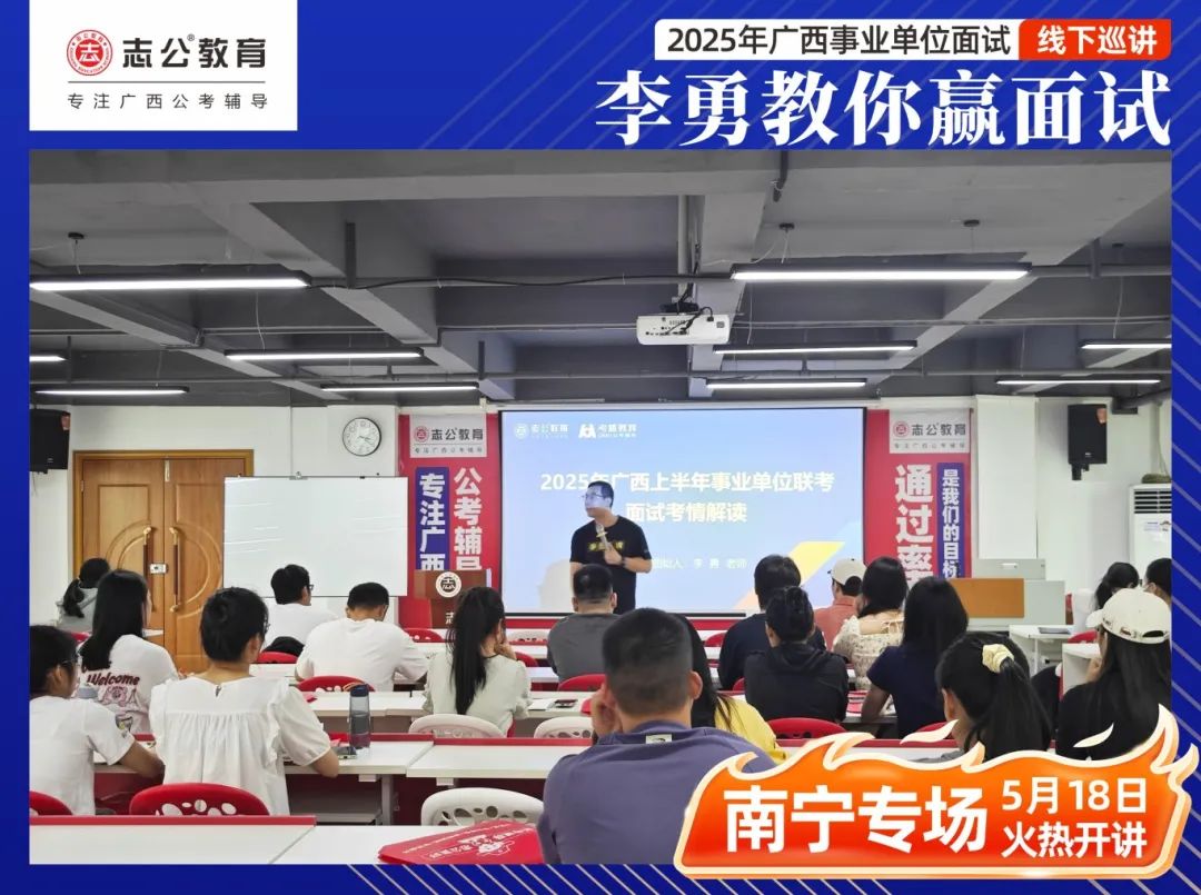 文章來源:李勇教你贏面試!2025廣西事業(yè)單位面試線下巡講南寧專場今天等你來!