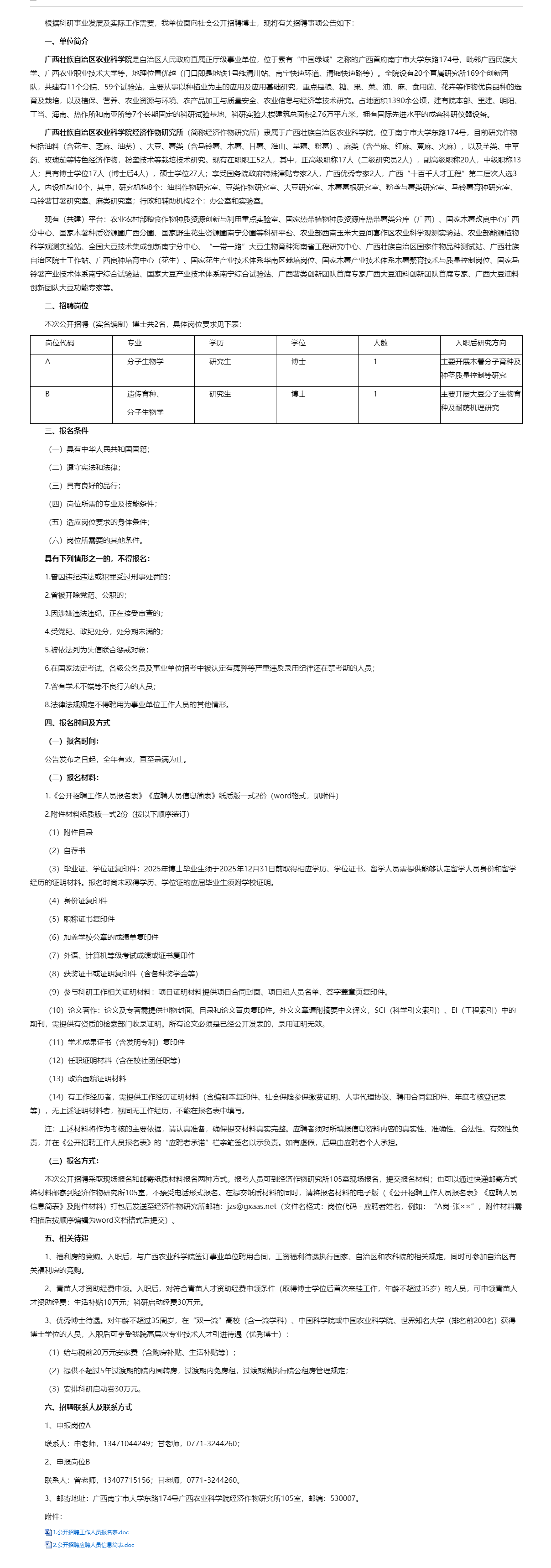 廣西農(nóng)業(yè)科學院經(jīng)濟作物研究所2025年博士公開招聘公告