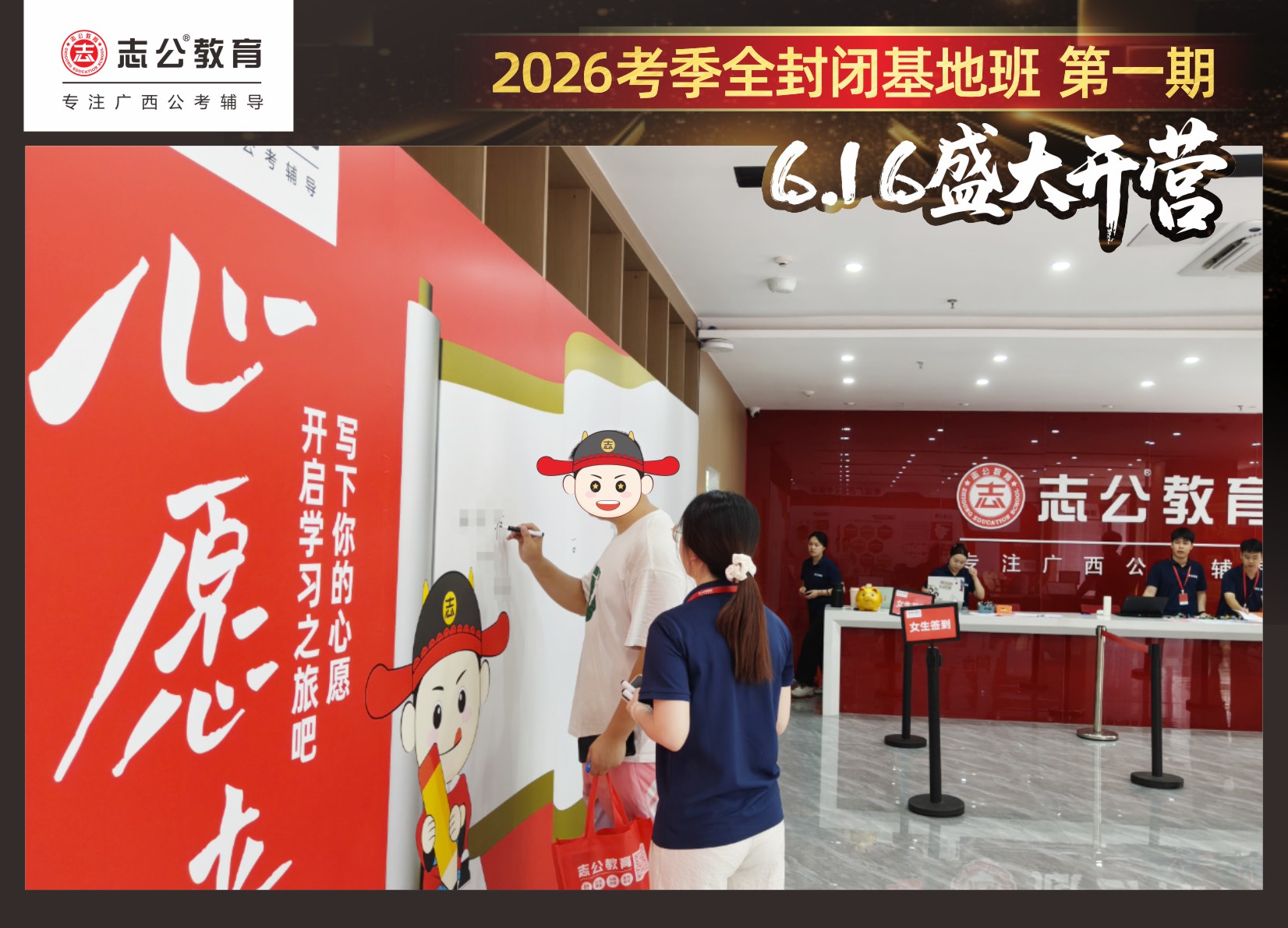 6月16日,志公教育基地班在萬(wàn)眾翹首以盼中,正式拉開(kāi)帷幕!來(lái)自各地的學(xué)員們,懷揣著夢(mèng)想與憧憬匯聚于此,以“躍龍門”的非凡勇氣和“走紅毯”般的自信姿態(tài),鄭重地書寫下屬于自己的“上岸心愿”。在這場(chǎng)充滿儀式感與溫馨氛圍的啟程儀式中,開(kāi)啟了新篇章。