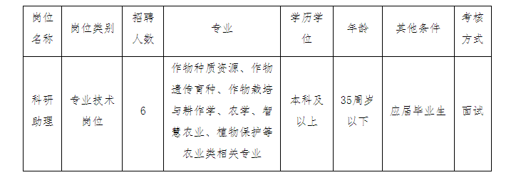 我所設(shè)有4個(gè)科室、1個(gè)種質(zhì)庫、1個(gè)中心和10個(gè)研究團(tuán)隊(duì)。根據(jù)工作需要,現(xiàn)面向社會公開招聘編制外工作人員6名。現(xiàn)將有關(guān)事項(xiàng)公告如下: