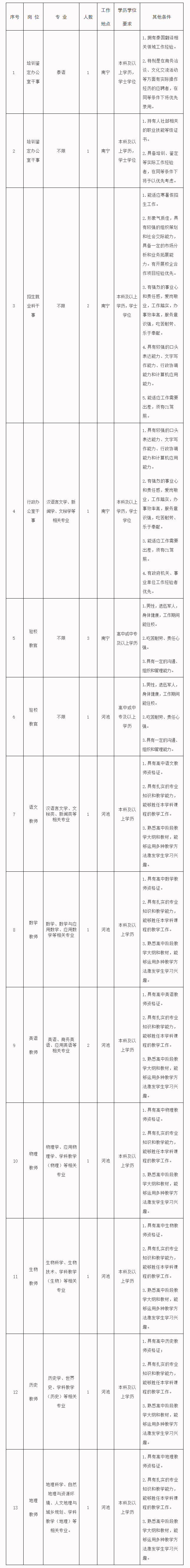 為滿足學(xué)校教學(xué)、管理和服務(wù)工作需要,現(xiàn)面向社會公開招聘編外工作人員17人,現(xiàn)將有關(guān)事項公告如下: