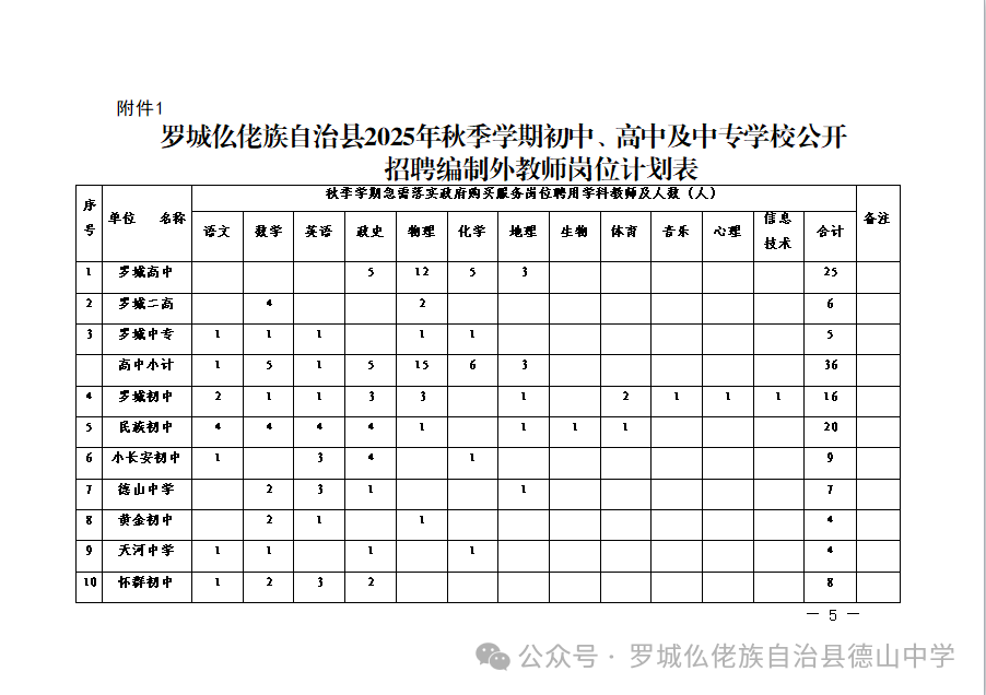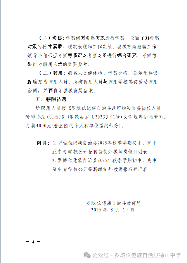 原文標(biāo)題:羅城仫佬族自治縣2025年秋季學(xué)期初中、高中及中專學(xué)校公開招聘編制外教師工作的公告