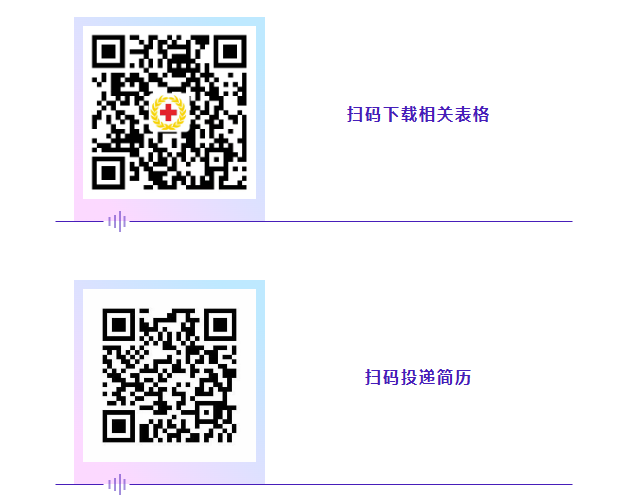 掃碼下載登記表等相關(guān)表格并填寫“個人應聘信息表”,將“個人應聘信息表”及個人簡歷以“姓名+專業(yè)+學校”的命名,發(fā)送至郵箱:hhyyrsk3858904@163.com;掃描二維碼,填報個人信息,上傳個人簡歷。