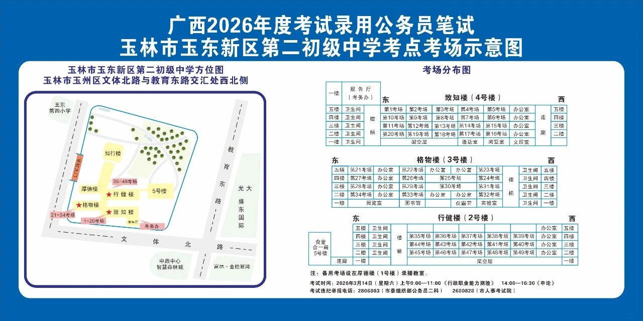 ⑩考點(diǎn)名稱:玉林市玉東新區(qū)第二初級(jí)中學(xué)(途經(jīng)公交線:11路;上下車站點(diǎn):富林金桂麗灣北)